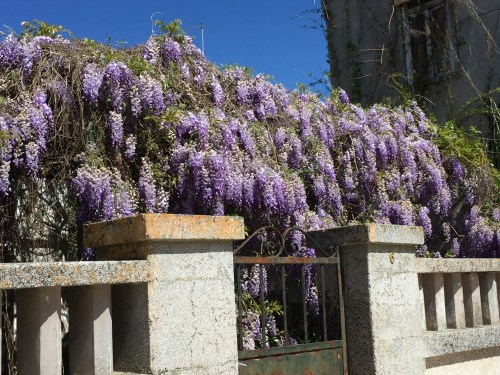 So here we are in Porte de Muge, sitting under a huge fir tree that’s at least 100 years old in a farmhouse yard drinking red wine and eating fresh bread and cheese.