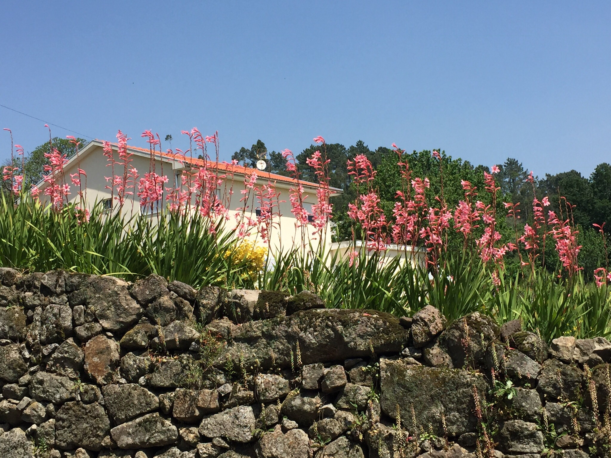 Apart from a few times we had to walk on some busy roads, most of today was on pleasant country roads and through villages and farm land. Later in the day we had to keep an eye on a bushfire that was developing ahead of us and what seemec to be some smaller fires around us. Portugal has planted vast eucalyptus plantations and in this weather its not suprising they are having some bushfires.