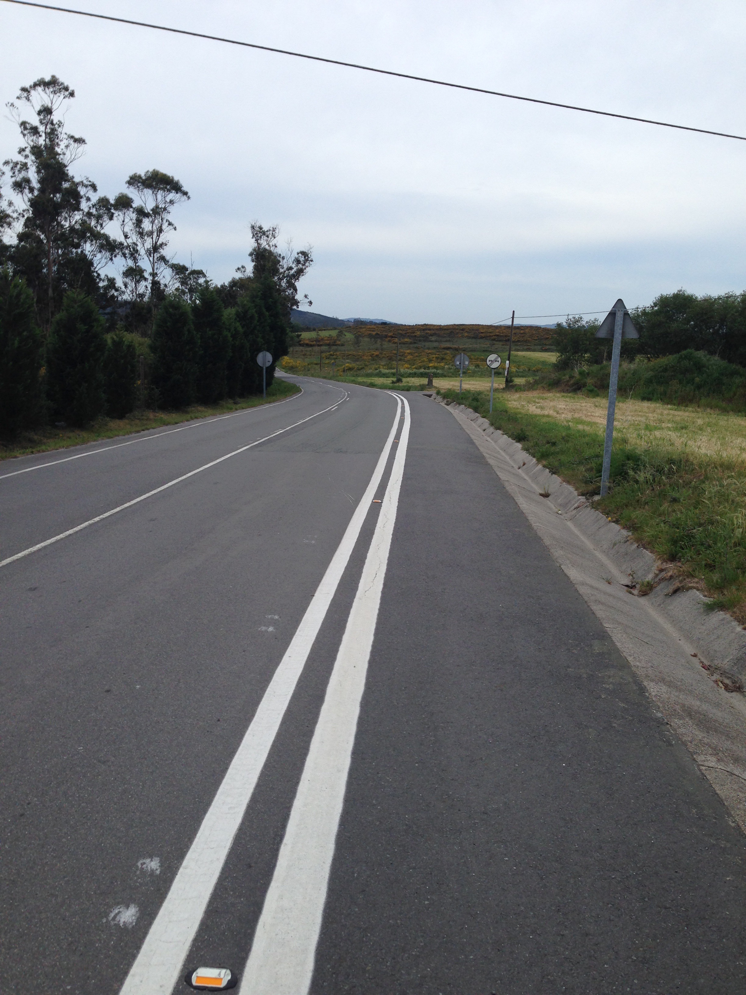 The hills rolled on and on and on, eventually we exited the high plains into the town of Cee via a fairly steep stoney descent.