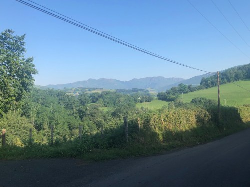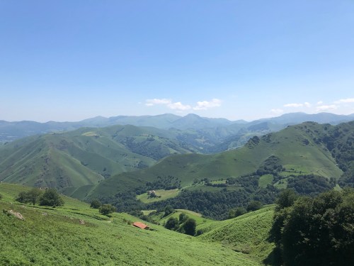 Today’s walk is on the Napoleon Route, up over the French Pyrenees. Its slightly longer than the Valcarlos Route which goes along the valley. Only 8km today with a gain in altitude of about 760m. Somewhat steep at times.