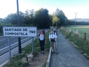 The day was a series of climbs up mountains ( yes plural), and down the other side. The temperature started to increase and the wind dropped, the sun had a sting in it and this made the climb up the mountains to Alto de Erro exhausting . There are no photos of the climb down into Zubiri, it was extremely steep and hazardous. About 3km over loose shale and rock. If we didn’t concentrate on each step there was a good chance of going A over T off the side of the mountain.