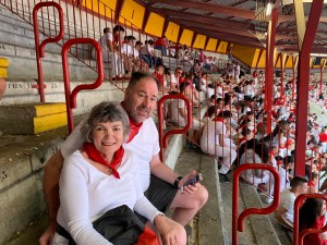 Up early this morning , last night I had managed to secure tickets to the bullring for the running of the bulls. We had to be there by 7am and it was a 30 minute walk from our hotel. The streets were packed with people, many had been up all night.