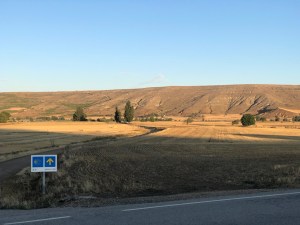 We stopped for a break in Hornillos del Camino, and could hear a clacking noise. It turned out to be the Storks nesting on the church.