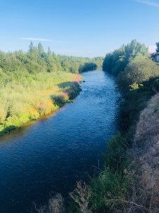 This river contains trout, I saw them jumping and a fly fishermen behind me was trying to catch some.