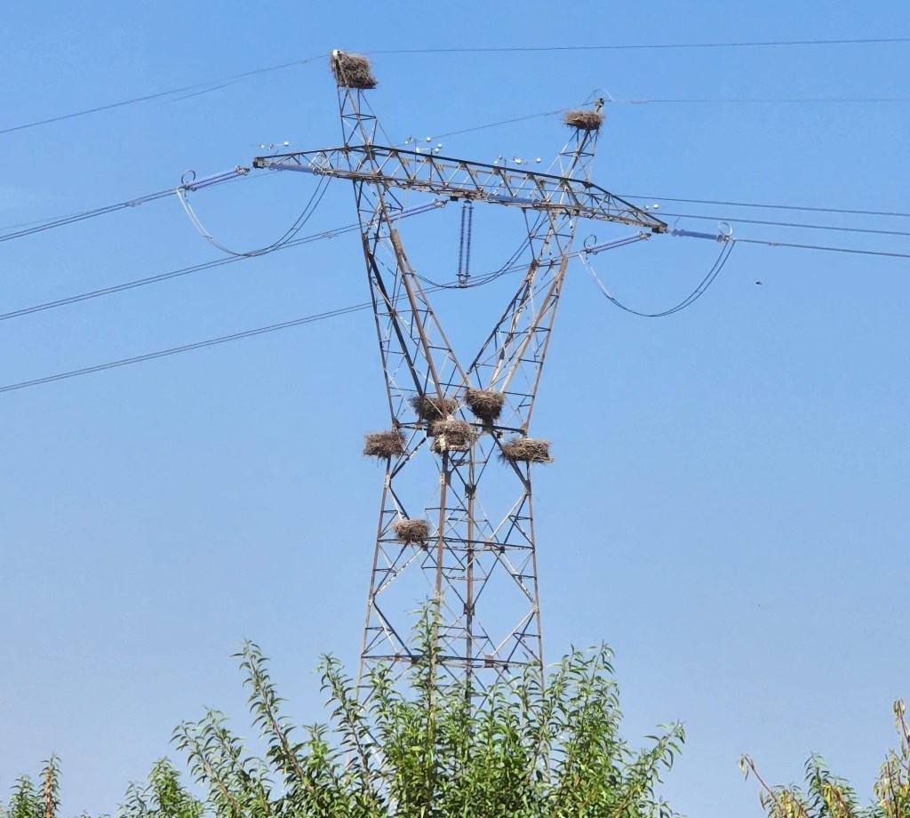 Stork nests are appearing, its not nesting season so they are empty. You can see from the photo the many nests in the high voltage power towers. The storks come back to the same nests year after year.