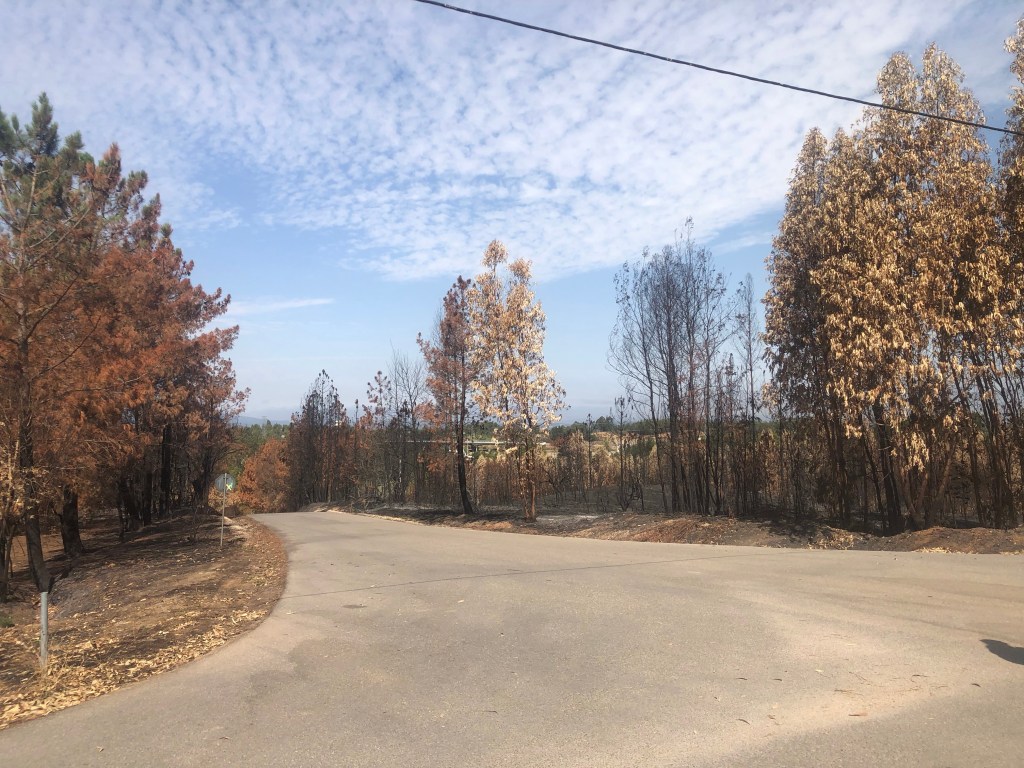 Portugal has been experiencing a major drought with temperatures into the mid 40’s as a result they have had and are still experiencing bushfires. One of the small towns we walked through today showed evidence of a near miss where the fires stopped at the edge of several properties and the church.