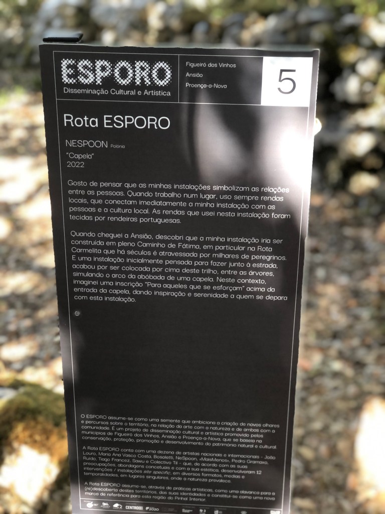 Walking through the forest we came across an art installation, made from lace woven by Portuguese lace makers.