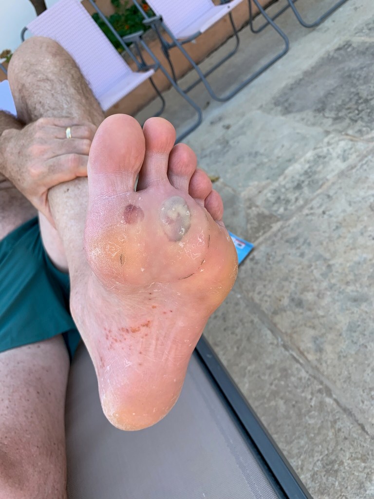 We took days 4 & 5 as rest days, day 4 was already planned as a rest day in Tomar and we added an extra day to allow my foot to recover. I have one of those nasty blood blisters on the sole of my left foot again. So I burst it, threaded it and left it covered. Sanitary pads cut to size do a great job of absorbing any liquid.