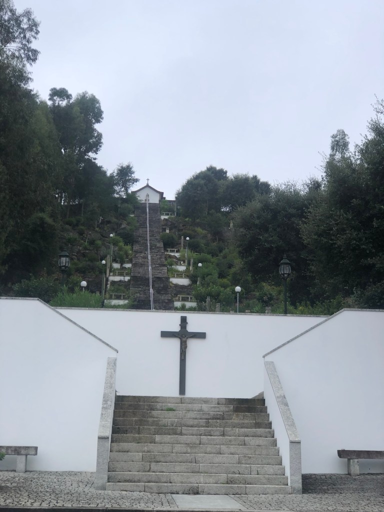 This church and monastery is on the side of a hill as we came out if the forest. It looks like stations of the cross are up the hill all the way to the chapel at the top.