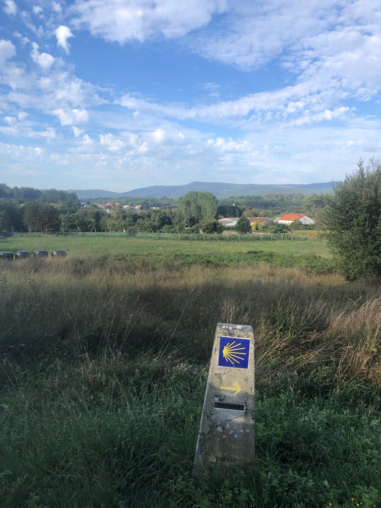 Early on there were quite a few pilgrims on the road, but as the day progressed the numbers thinned out. Some passed us, some fell back. Most of the path took us through country lanes, small villages and open farmland. The last few kms were uphill and through Santiago suburbia, not a pretty sight.