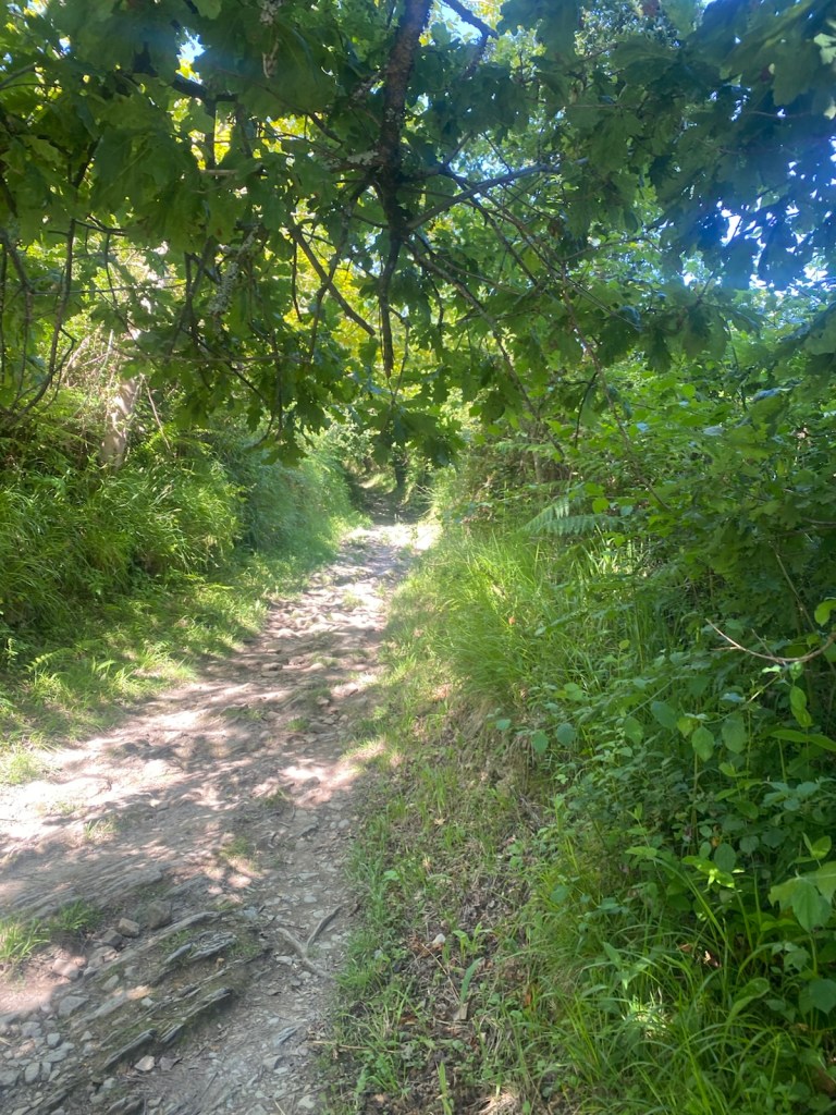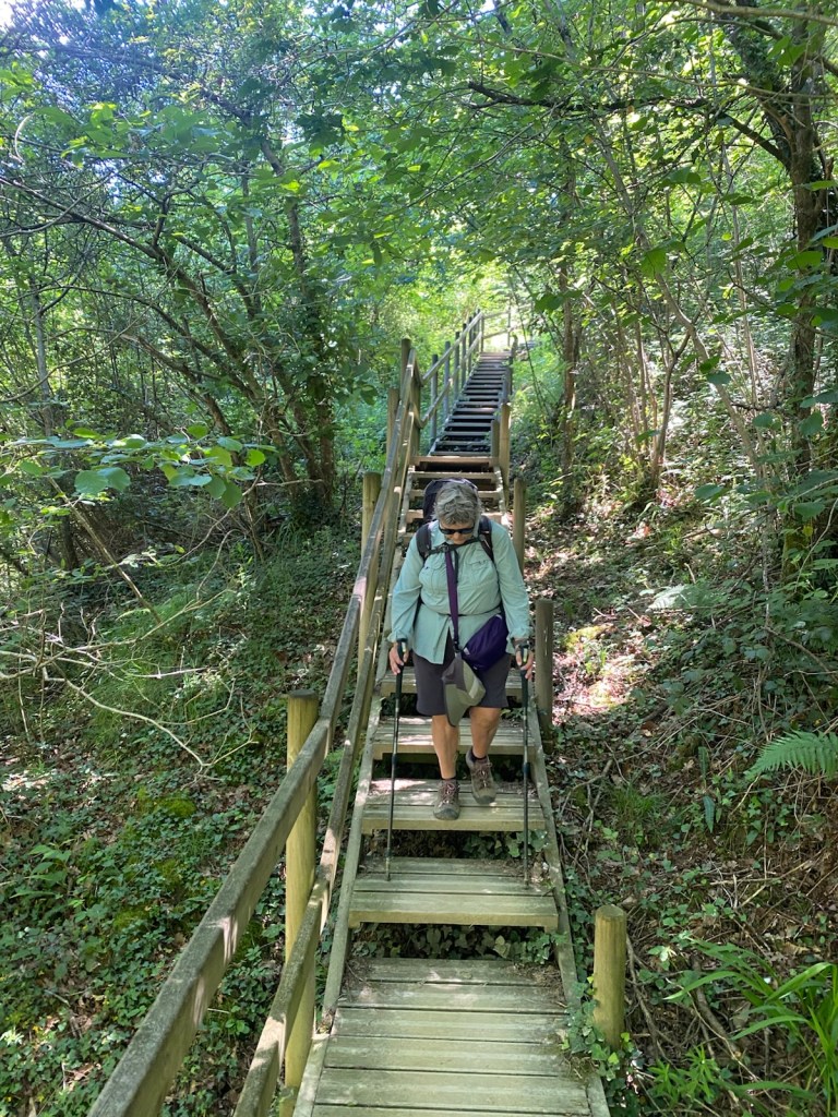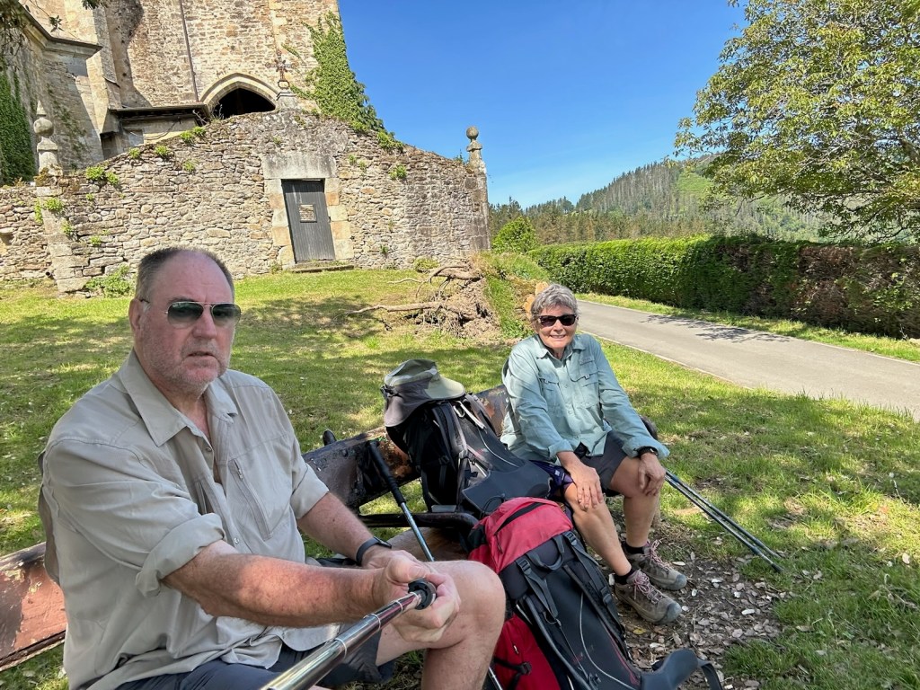 The day started out very promising, a Spanish breakfast, clear cloudless sky’s and no aches and pains. The walk out of town was beside a babbling book. But soon started up into the mountains.