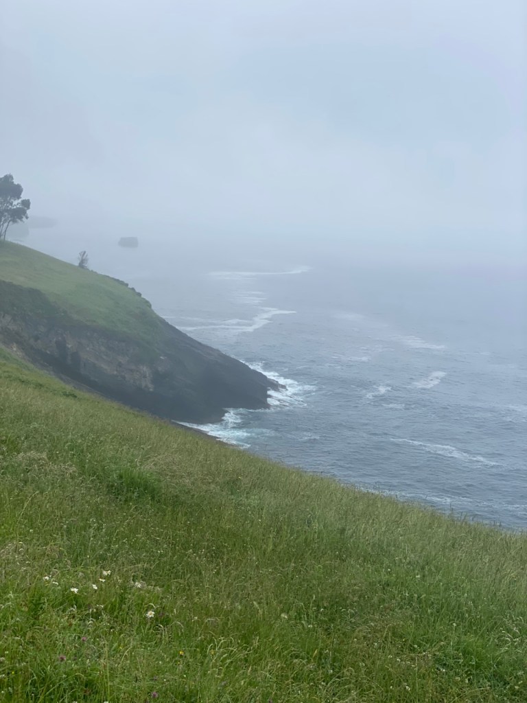 We continued on slowly. The initial walk out of Castro Urdiales is relatively flat but we started to go uphill as always and into forested areas. After walking past on old bull ring. The path took us back along a coastal walk.