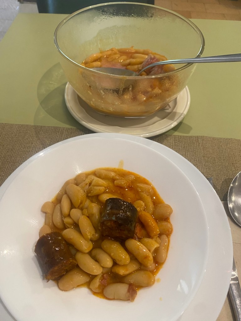 The white bean stew is a regional dish, Fabada asturiana. I am really loving it.