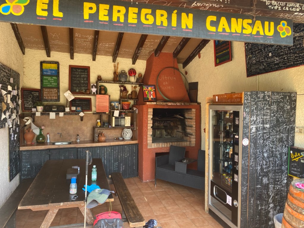 After walking about 15km with no services I came across a house where the owners had set up their shed/garage and back yard as pilgrims rest stop, they even provide a vending machine for drinks, snacks and cold salads. As well as a microwave and sink with running water, for pilgrims to rest. It was about 6km from my days end, so a good chance to rest and get ready for the final push.