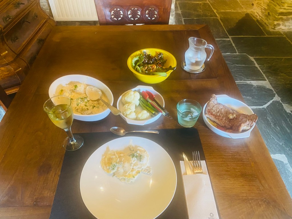 I am staying in large house, a Casa Rural, where the owners rent out rooms to pilgrims and provide communal meals.