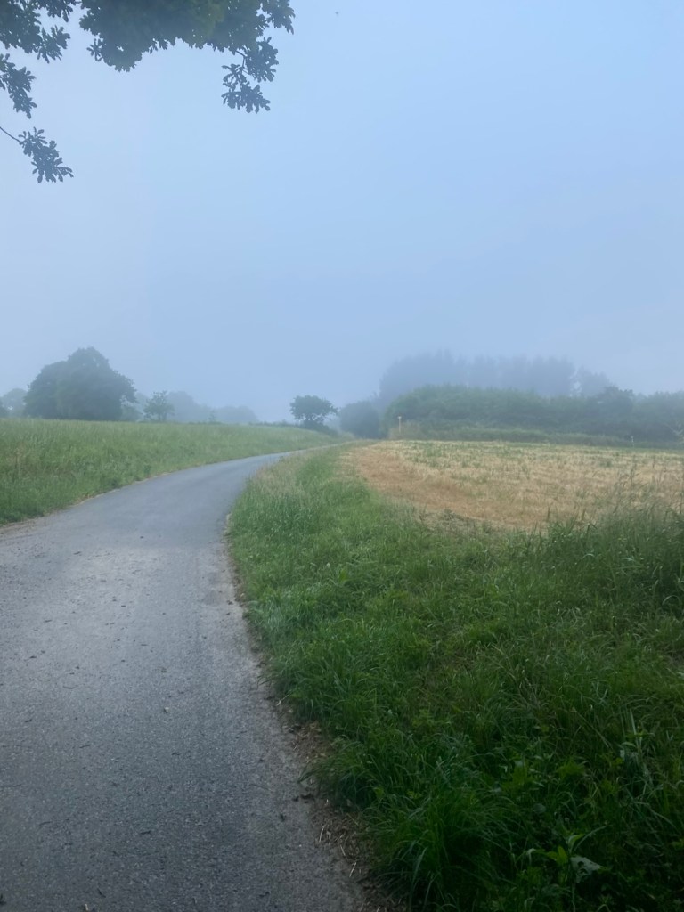 Started off in the fog, path was well marked and fairly flat all day, my pace picked up today as a result.