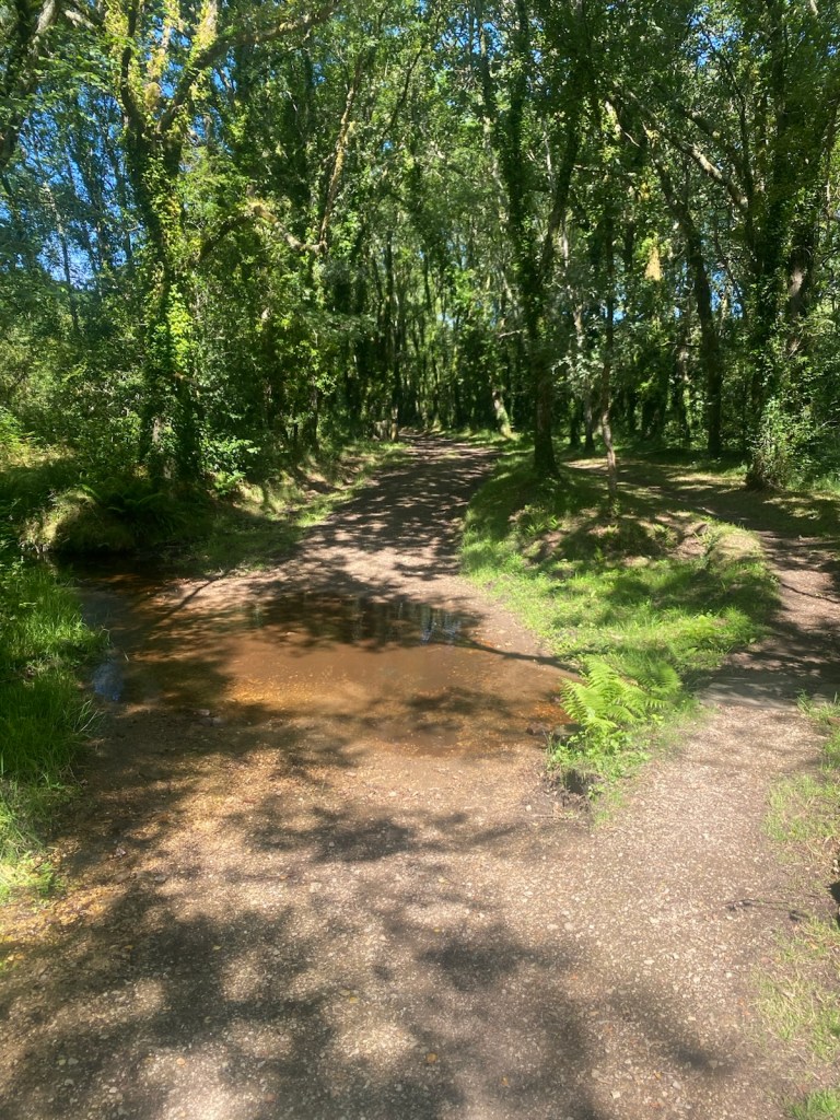 Walked through forested areas as well as farmland, mostly on country tracks and roads. Mostly shady, except near the end and crossed quite a few streams. No highway walking today.