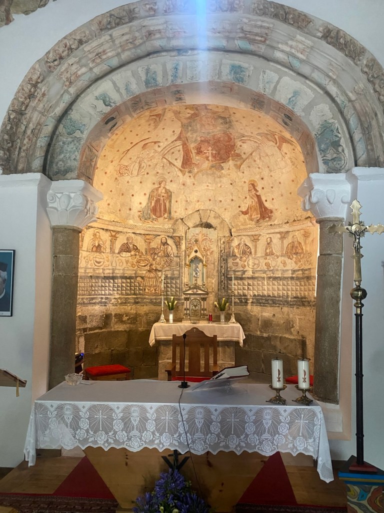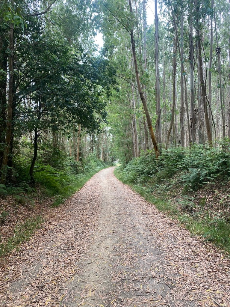I came upon a small church with a man standing outside, he was a volunteer and was handing out fliers for mass times at various churches between here and Santiago. It started to rain lightly and I stood under tree chatting with this guy. He was from Italy and was volunteering with a group the open and man churches along this part of the Camino. He says that’s the only way they can be opened, there are not any locals that do this. I was able to visit the church and get a stamp. Pilgrims on the Camino carry a pilgrims passport, which needs to be stamped and dated twice a day if you are to receive your Compostela from the pilgrims office in Santiago de Compostela. It looks/feels better to get stamps in churches rather than bars and hotels. But it doesn’t make any difference in the end. At the pilgrims office they only give them a brief glance.