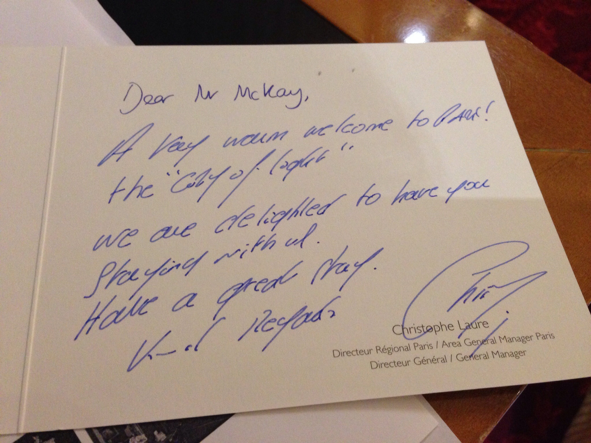 The grand Hotel extended a warm welcome on our arrival with a personal welcome to the ‘City of Light’! We have been enjoying all the Hotel has to offer including champagne with breakfast!